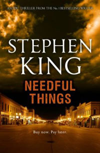 I fittingly reach the end of my current stage of Stephen King rereads with a novel that marked the end of a certain phase of Stephen King’s career—or, specifically, the end of a certain home for his tales. Needful Things, first published in 1991, was heavily marketed as being the final Castle Rock novel: the tale in which he would destroy, once and for all, the small American town in which many of his novels and stories had been set. Cinephiles may also recognise it as the name of Rob Reiner’s production company (Reiner having directed Stand By Me, which is chronologically the earliest Castle Rock tale if I’m not mistaken).